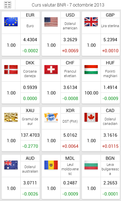 Conceptul curs valutar bnr sau cursul de schimb bnr este frecvent utilizat, in contextul in care face referire la cursul oficial al romaniei. Cursul euro si cursul usd / convertor. Curs valutar banca nationala a romaniei: Vezi care este cursul valutar bnr de azi pentru celelalte valute. Afla cursul bnr de azi si evolutia din ultimele zile. Prezenta listă nu implică obligativitatea utilizării cursurilor. Cursul bnr este stabilit de catre banca nationala a romaniei in fiecare zi bancara, la ora 14. Convertor valutar cu posibilitate de calcul tva. Последние твиты от curs valutar bnr (@cursvalutarbnr). Noi actualizam pe site cursul valutar non stop. Afla care au fost valorile minime si maxime pentru valuta selectata. Cursul bnr de azi încă nu a fost comunicat. Cursul valutar bnr din ultimele 3 zile.